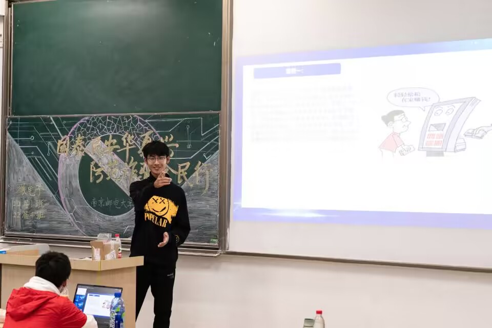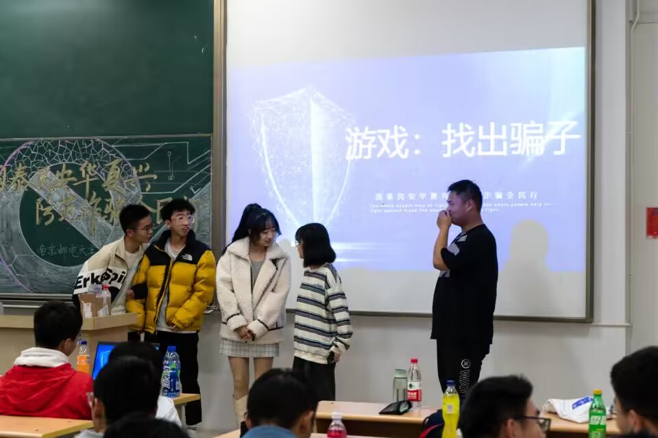 其次,在“诈骗套路大揭秘”中,主持人赵睿鹏旁征博引,列举丰富的实例,结合大学生实际,重点介绍了刷单返利、网络交友、杀猪盘等典型诈骗形式,并引导同学深入思考,应该如何处理各式各样的诈骗陷阱。