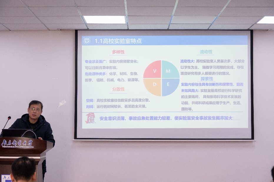 焦辉副处长从当前实验室安全形势、上级及学校文件解读、实验室安全相关要求等方面进行详细讲解,并指出部分师生安全观念亟需转变,号召教师引导和培养学生良好的安全习惯,鼓励全体师生“让安全成为习惯,让习惯更安全”。