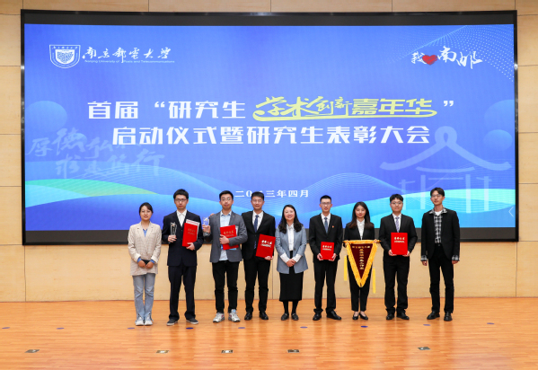 2023年4月13日下午,我校首届“研究生学术创新嘉年华”启动仪式暨研究生表彰大会在仙林校区图书馆报告厅举行,校党委常委、副校长蒋国平、研究生工作部部长何海洋出席会议并做重要讲话。色情网 党委副书记、副院长乔祖琴书、研究生辅导员张龙、刘志敏以及受表彰同学参加了此次会议。