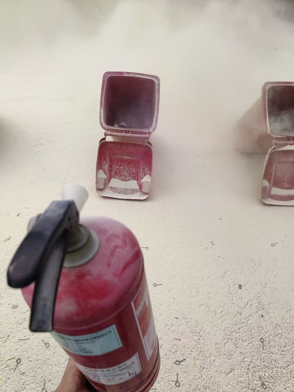 随后,志愿者们耐心教导同学们如何使用干粉灭火器,先拔插销、拿起胶管使喷嘴对准火焰根部,但有些灭火器不能直接触碰喷嘴,不然可能会受伤,按压把手,一气呵成。“嘶……”一阵白雾扬起,盖灭了刚刚冒头的火苗。“原来灭火器这么简单就能用好!”蒋涵政同学如是说。