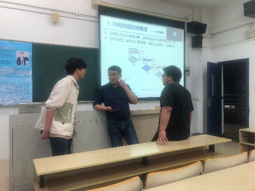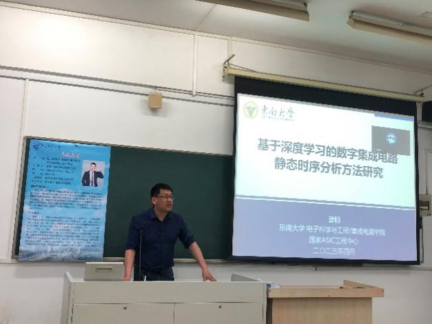 在报告中,曹老师讲解了当前全球以及国内EDA的现状,然后讲解了布局阶段时序预测以及宽电压众工艺角时序预测,最后一项综合阶段众工艺角的时序预测工作被2023年EDA领域顶会DAC录用,由曹老师的研二学生宋仟仟(第一作者)进行了分享。会后,同学们积极提问,曹老师就同学们的提问进行了一一解答。