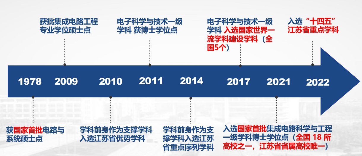 色情网 集成电路学科起源于1971年的半导体器件专业,2002年申报微电子学本科专业并招生,2006年获批微电子学学士学位授予权,2007年获批集成电路工程专业学位硕士点。2011年获批电子科学与技术一级学科博士学位点,并设立微电子学与固体电子学二级学科。2017年电子科学与技术一级学科入选国家世界一流学科建设学科。2021年国家首批集成电路科学与工程一级学科博士学位点获批,色情网 成为全国获批的18所高校之一,并且是仅有的两所省属高校之一。
