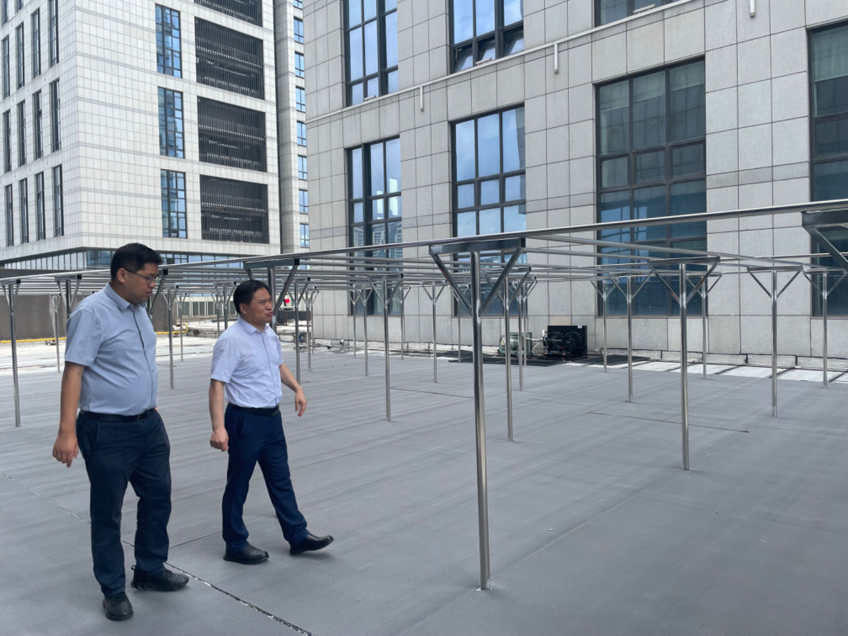 检查学生公寓晾晒区建设情况