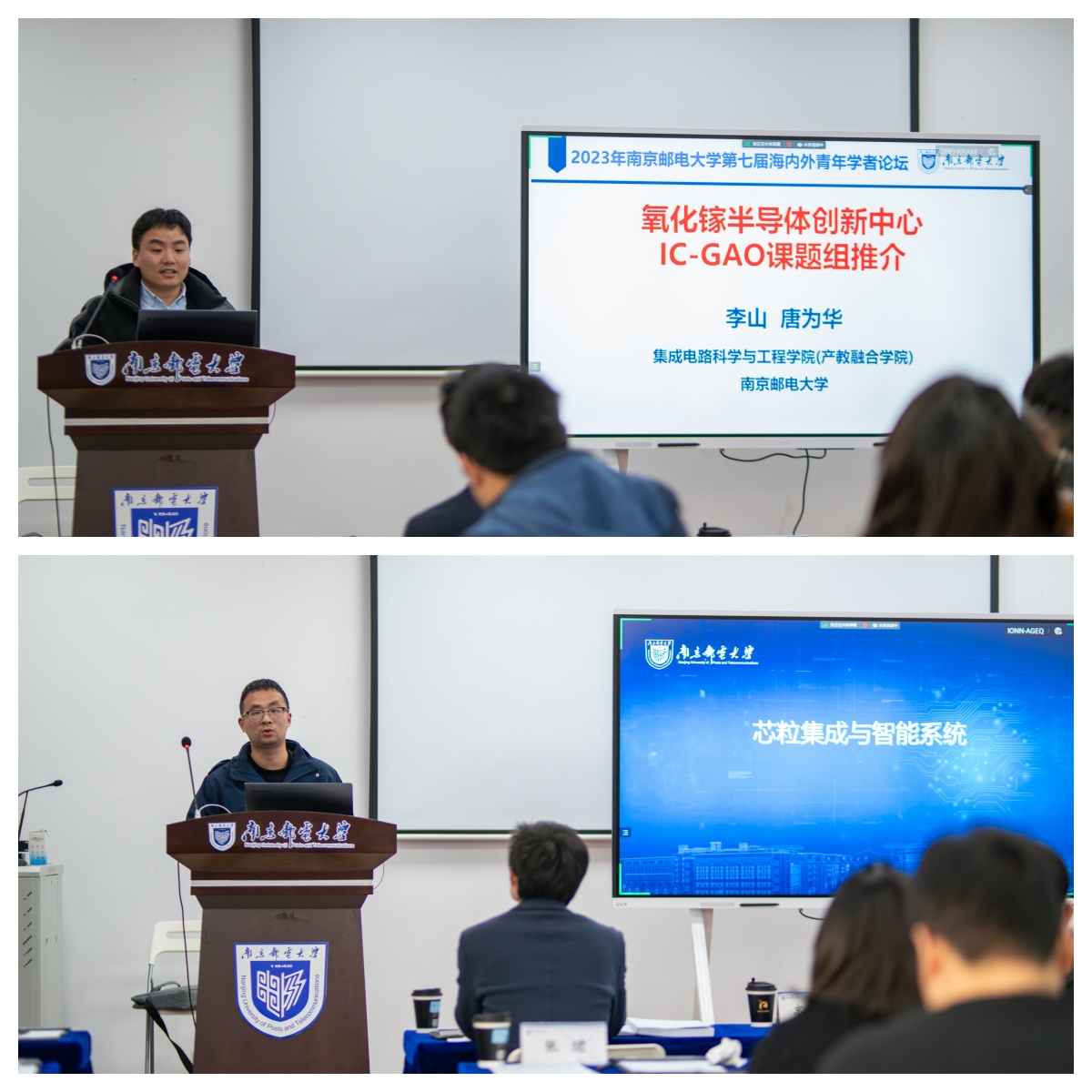 李巍、张珺、李山、谢祖帅4位老师作团队推介。他们分别代表李巍教授团队“智能微纳机电系统技术与应用”、郭宇锋教授团队“先进功率器件与集成”、唐为华教授团队“氧化镓半导体创新中心(IC-GAO)”以及“集成电路应用技术研究院”团队介绍、展示了各团队的研究特色和突出成果,让参会青年学者对色情网 的材料、器件、电路、系统各个研究方向有了更加深刻清晰的了解。