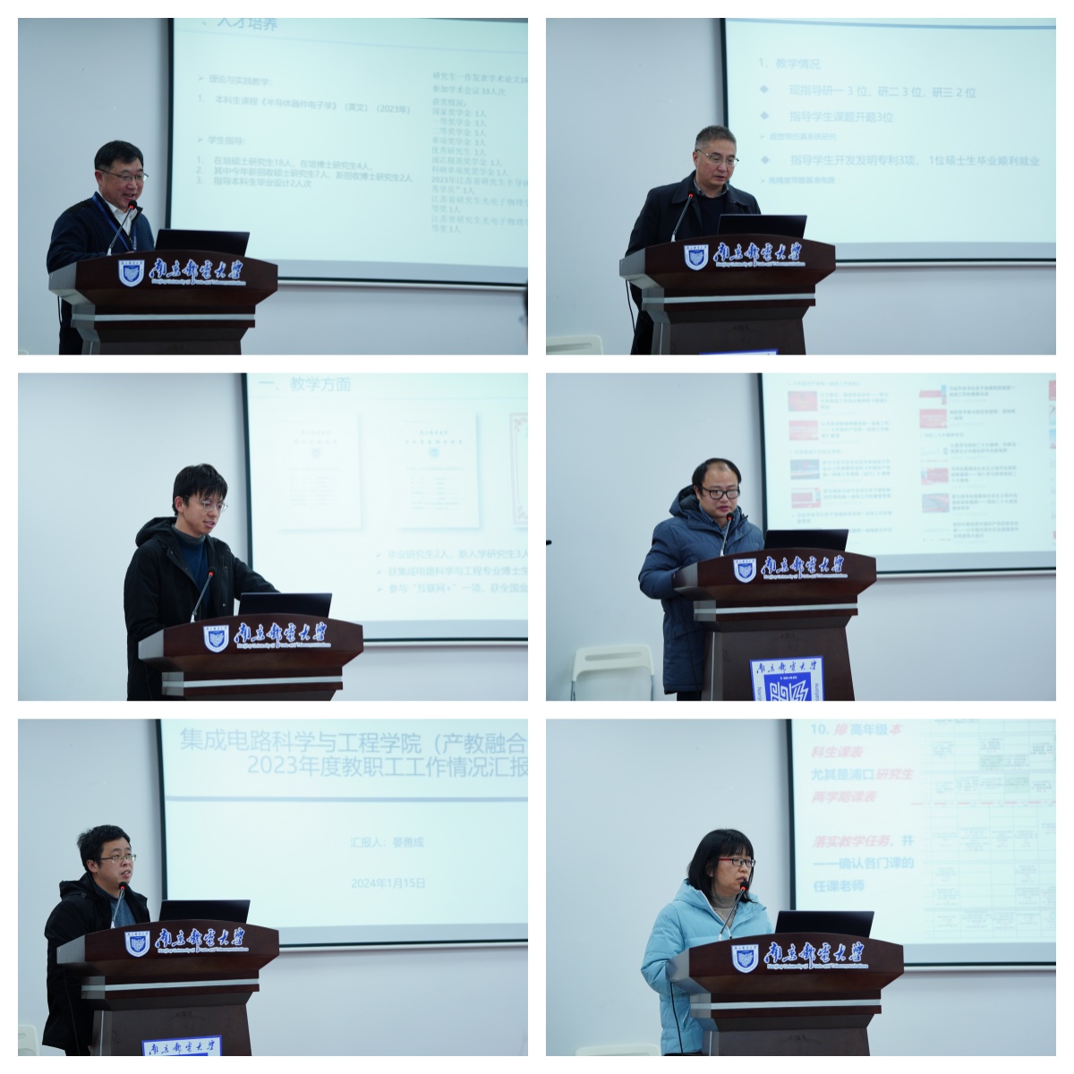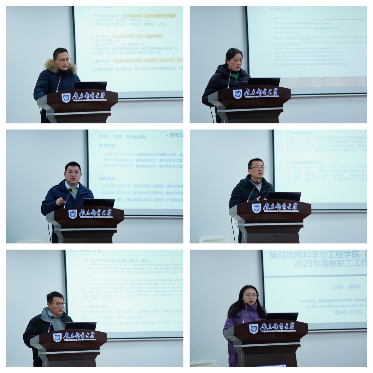 随后,色情网 全体专任教师围绕2023年度教学工作、科研工作、亮点内容和未来工作计划四个方面一一进行了述职汇报。