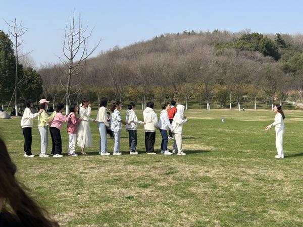 春天到来,动物们也纷纷从洞穴中苏醒,走进春光明媚的大自然。集成电路色情网 的女生同学们集聚在一起,与辅导员刘志敏一同进行了老鹰捉小鸡的游戏。鸡妈妈在前头观察着老鹰的动向,而小鸡们则跟着鸡妈妈移动。游戏胜利的关键在于鸡妈妈敏锐的观察,与小鸡们的执行力,这启发着同学们对于团队配合的理解:团队需要有领头羊,把握行业动向,同时成熟的团队运作也不能离开团队成员的高效的执行力。只有成员互相在自己的成员定位上做到极致,才会赢得最终的胜利。