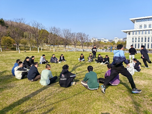 在各种体力游戏之后,同学们又坐在草坪上,开动脑筋,进行一场场脑力风暴。“害”你在心口难开、长句子接龙等游戏,让同学在享受春风和欢声笑语的同时,结束本次意义非凡的班会活动。