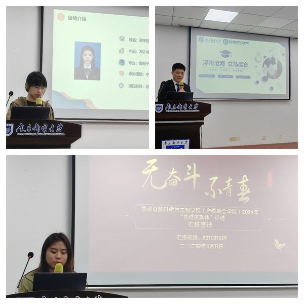 会上,各候选人分别从思想、学习、工作及社会实践等方面,全面充分展示了自己在校期间的成长历程。他们坚定理想信念,练就过硬本领,解决“卡脖子”问题,研究“芯”技术,贡献“芯”成果;他们投身强国伟业,耕耘科技难题,把青春汗水挥洒在祖国最需要的芯片领域,铸就“芯”青年,新榜样。