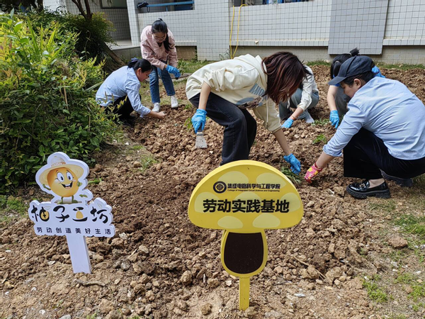 劳动教育作为培养学生素质全面发展的重要途径,不仅能够锻炼学生的实践能力,还能增强其社会责任感。4月25日下午,院分团委书记王宸文姬老师、2023级本科生辅导员刘志敏老师以及竹苑宿管阿姨,带领B230306班15名同学在竹苑劳动实践基地--“芯”愿工坊开展科学栽苗等实践活动。