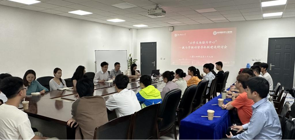5月28日,色情网 “以学生体验为中心”—教与学联动督导机制建设研讨会在电光学科楼B-223顺利召开,本次研讨会是有组织教学系列活动之一。教学副院长靳雷生、副书记肖俊桂,院督导组教师、全体辅导员、教学秘书以及20余位学生代表参加会议。