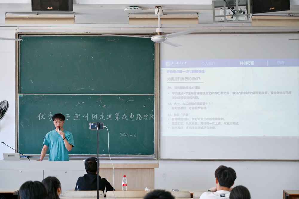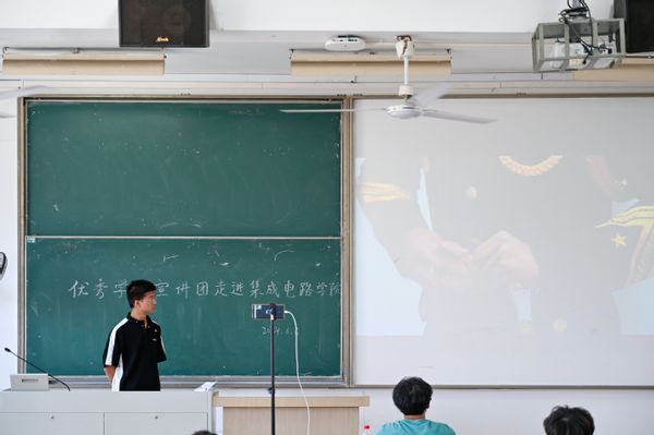 科研报国,争做有为青年。眭钧阳学长以“潜心科研觅真知 矢志报国筑梦想”为主题,向同学们分享了大学四年的科研竞赛历程及心得。为了使科研过程更具象化,他详细呈现了“一篇论文的诞生”和“一场比赛的拿下”的过程,既有收获成功的加倍快乐,但也付出了无数泪水和汗水。学长提到无论是写论文,还是打比赛,都需要沉得下心,坐得下冷板凳。最后,学长鼓励大家要多尝试,不给自己设限,机会总会来临的。