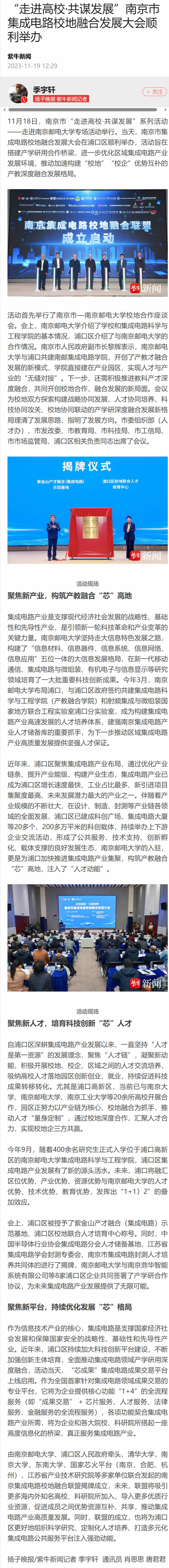 【扬子晚报客户端】“走进高校·共谋发展”南京市集成电路校地融合发展大会顺利举办