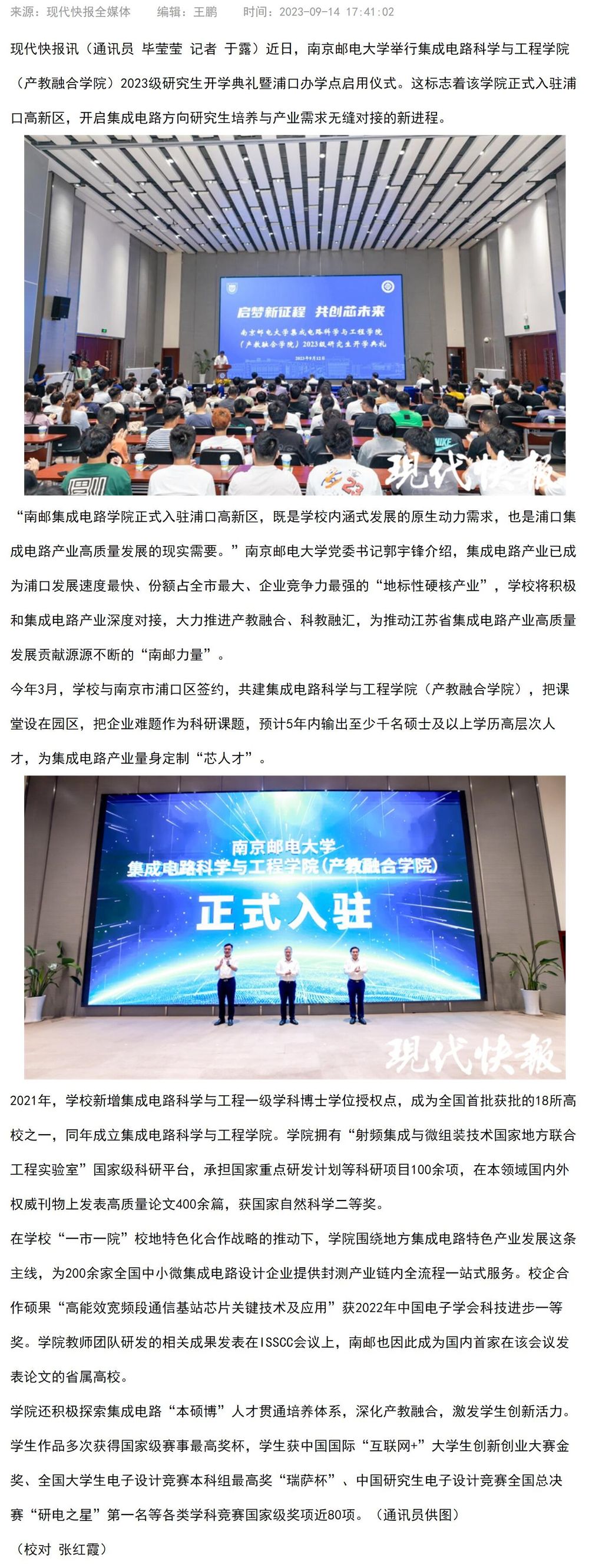 【现代快报全媒体】量身定制“芯人才”!南邮集成电路色情网 正式入驻浦口