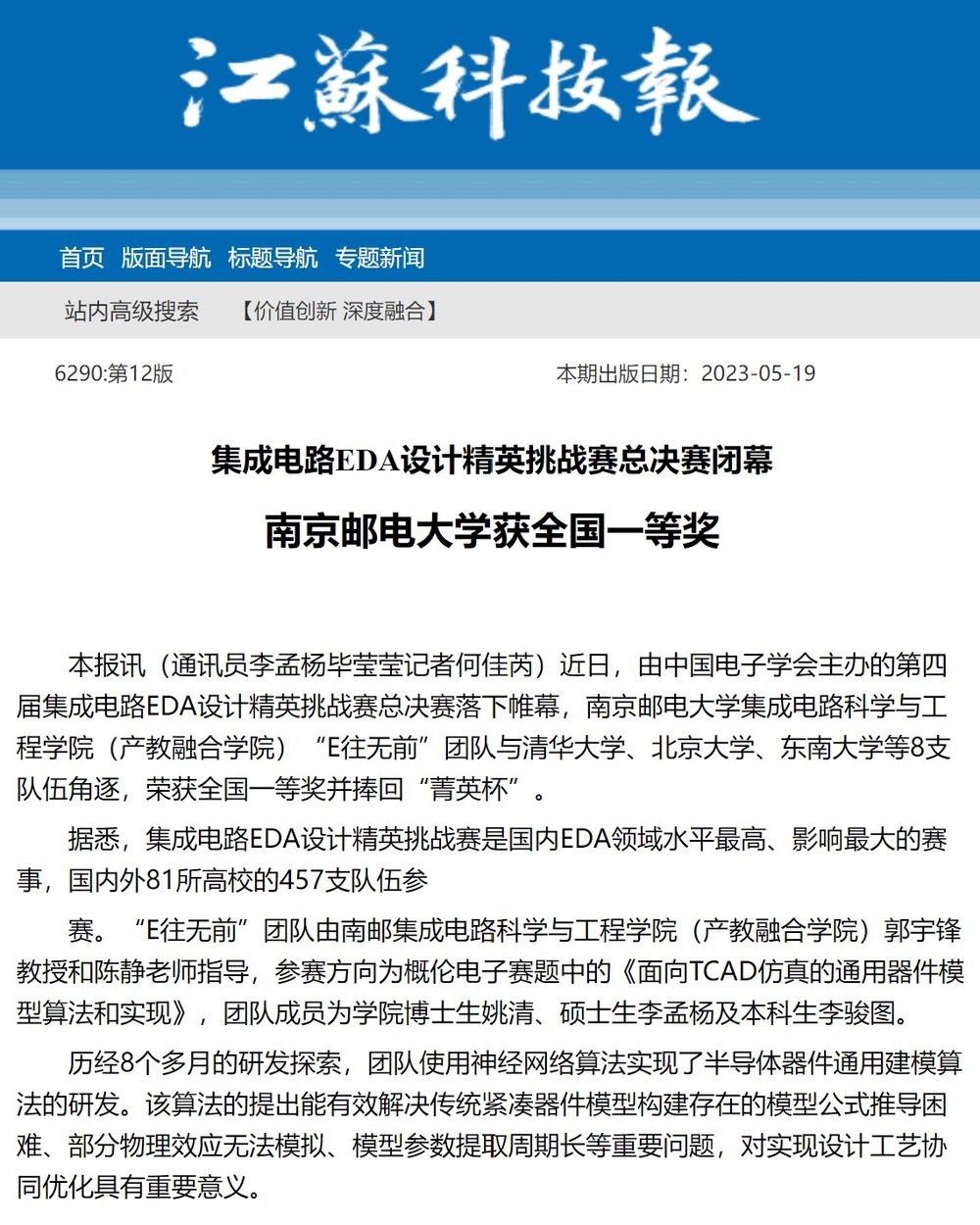 【江苏科技报】集成电路EDA设计精英挑战赛总决赛闭幕 色情网 获全国一等奖