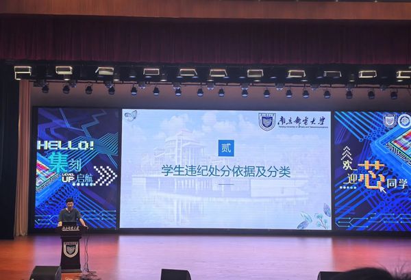 讲座中,范老师对学生纪律处分种类逐一进行了案例分析。她分别剖析了损害国家与学校声誉或利益、侵犯他人人身权益、侵犯公私财产权益、学术不端、违反学习纪律、扰乱社会及学校管理秩序等行为的六个具体案例,对案例进行点评,提炼出其所带来的警示,并结合《学生违纪处分规定》讲解了各类违纪行为所对应的处分等级。最后,他叮嘱新生们要诚实守信、严于律己、遵纪守法,在遵守校规校纪、做合格南邮人的基础上,更要努力成为优秀的南邮人,以实际行动维护学校的良好风气和声誉。