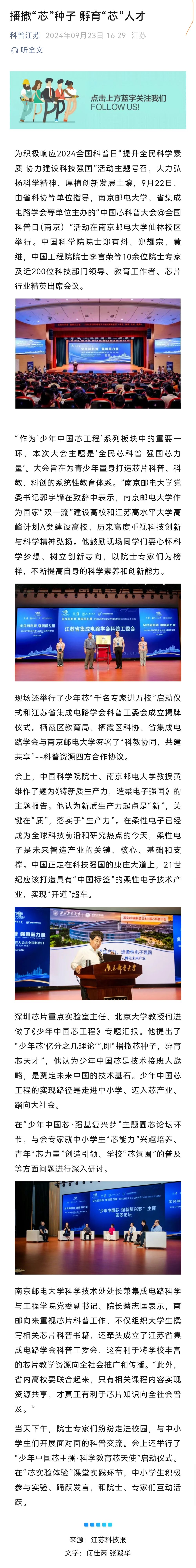【江苏科技报】播撒“芯”种子 孵育“芯”人才