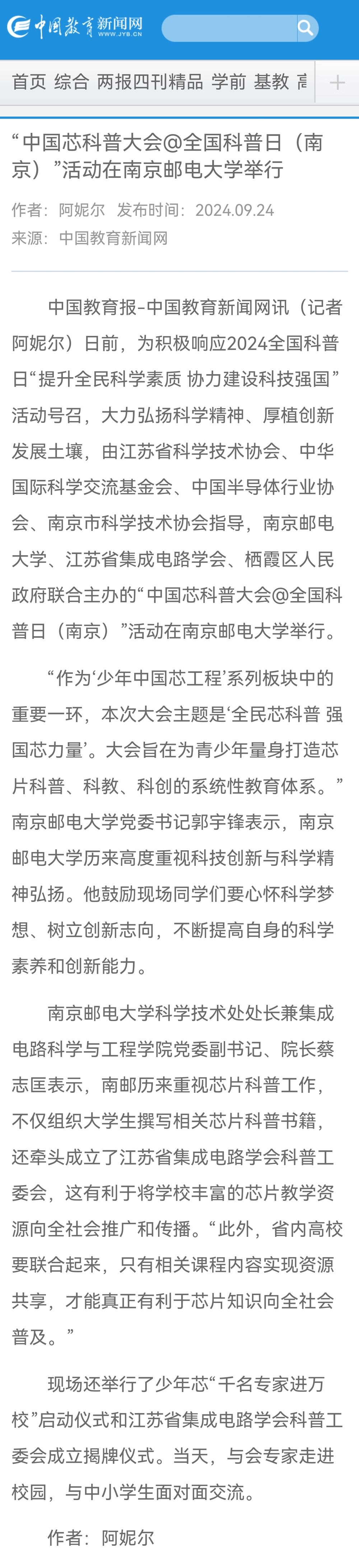 【中国教育新闻网】“中国芯科普大会@全国科普日(南京)”活动在色情网 举行