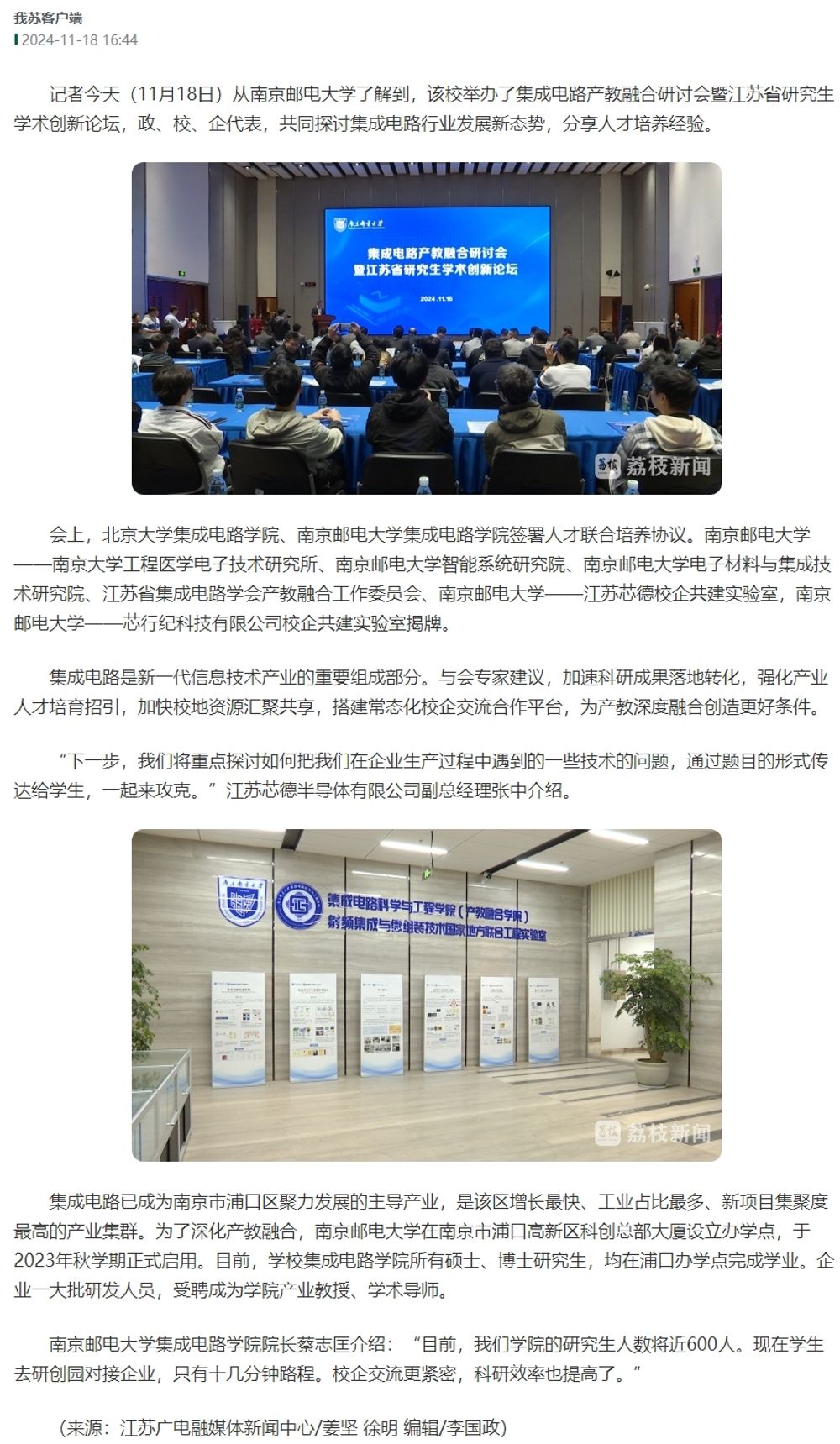 【我苏客户端】南邮举办集成电路产教融合研讨会,探讨行业发展新态势