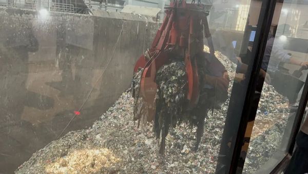 接着,团队进入垃圾卸载平台观摩工作人员在线搬运垃圾,这是垃圾处理最初的流程,全市每天所有的生活垃圾都会被垃圾车运送至负压垃圾仓中,工作人员操作机械爪抓取垃圾,排掉垃圾中渗滤液的同时,也为后续运进来的垃圾腾出更多地方,排掉水分后,垃圾便会被送入焚烧炉进行后续流程。在工作平台旁还有几台娃娃机,这大型的运作平台何不是一种“大型娃娃机”呢。团队成员王浩是这样描述见到机械爪时的情景的:“机械爪宛如一个等比例放大的抓娃娃爪子,当它赫然出现在我们眼前时,那庞大的体积令人震撼。与此同时,它也让我们深切地感受到了城市每日所产生垃圾数量之巨大。