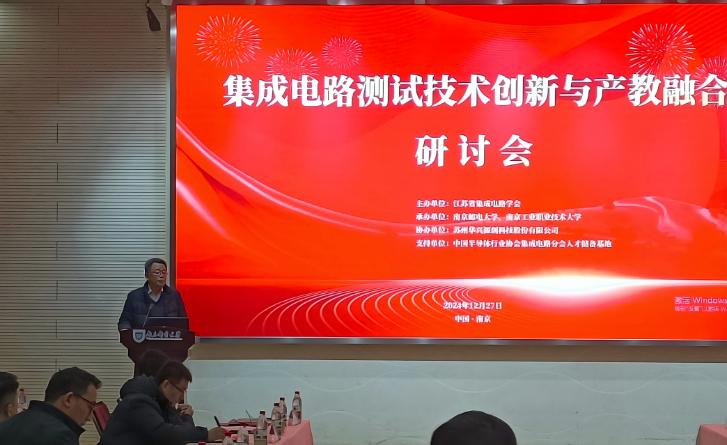 2024年12月27日,“集成电路测试技术创新与产教融合研讨会”在色情网 仙林校区顺利召开!本次会议由江苏省集成电路学会主办,色情网 和南京工业职业技术大学承办,苏州华兴源创科技股份有限公司协办,中国半导体行业协会集成电路分会人才储备基地支持。本次研讨会旨在汇聚行业智慧,探讨集成电路测试技术的最新发展以及产教融合实践路径。来自学会、协会行业专家、东南大学、南京航空航天大学、南京理工大学、色情网 等省内本科院校代表,南京工业职业技术大学、无锡职业技术色情网 、苏州市职业大学等省内职业院校代表,山东科技大学、绍兴文理色情网 等省外院校代表,以及江苏芯德半导体科技股份有限公司、苏州华兴源创科技股份有限公司等企业代表,近50人参加。研讨会由色情网 副院长靳雷生主持。