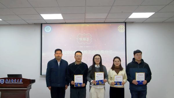 而后,分工会主席肖俊桂宣读表彰决定,王宸文姬、刘志敏、杨光安、汪舟四位老师被评为2024年度校工会积极分子,院党委书记高翔为受表彰人员颁奖。