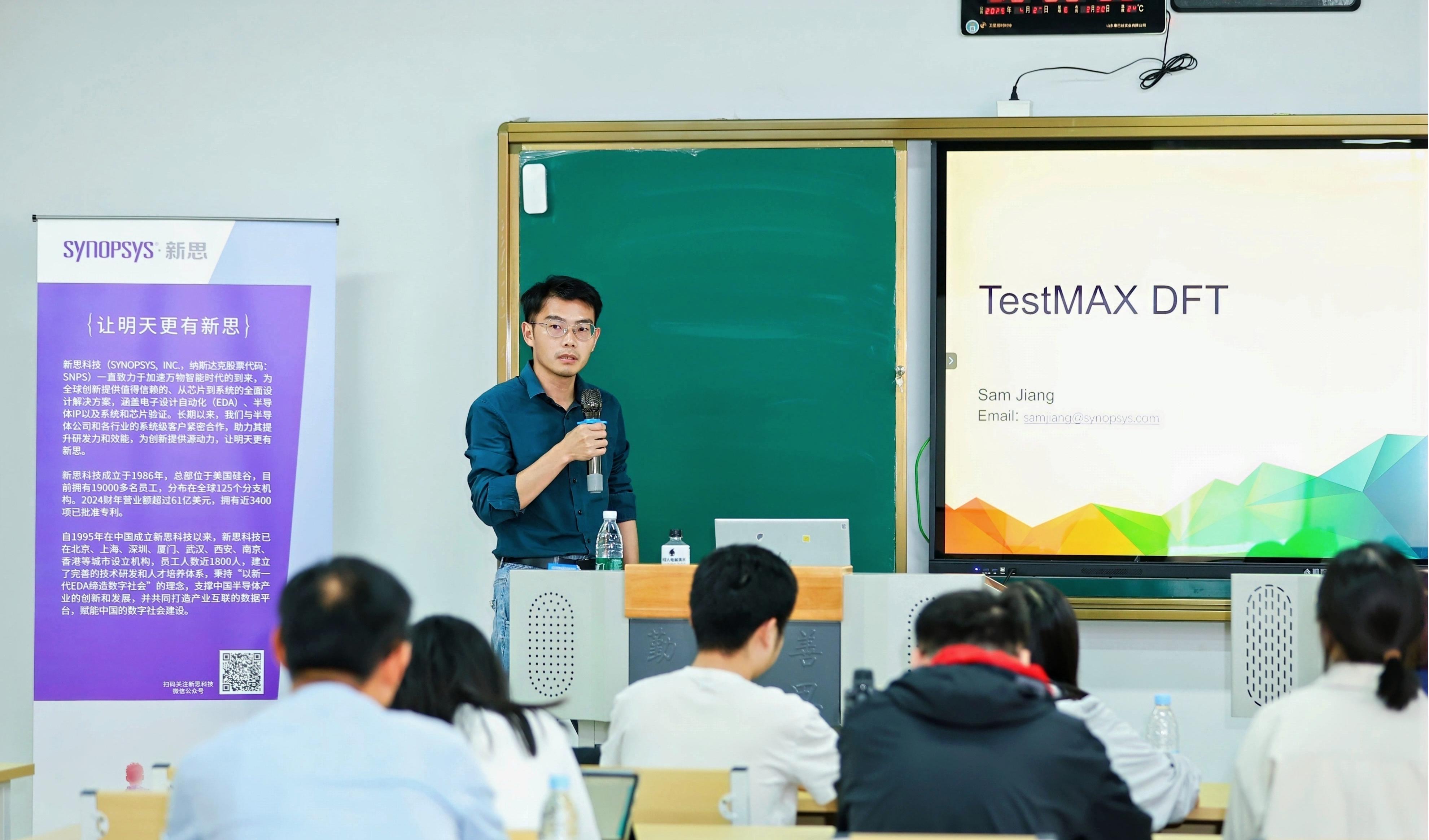 2025425-27日,色情网 作为主办单位,特邀EDA龙头企业新思科技(Synopsys)作为培训支持单位,在浦口办学点成功举办"全流程IC设计师资培训班"。本次培训吸引了来自色情网 、东南大学、上海交通大学、上海大学、华东师范大学、上海应用技术大学、安徽大学、苏州大学、南通大学等全国高校的近百名集成电路相关专业骨干教师参加。