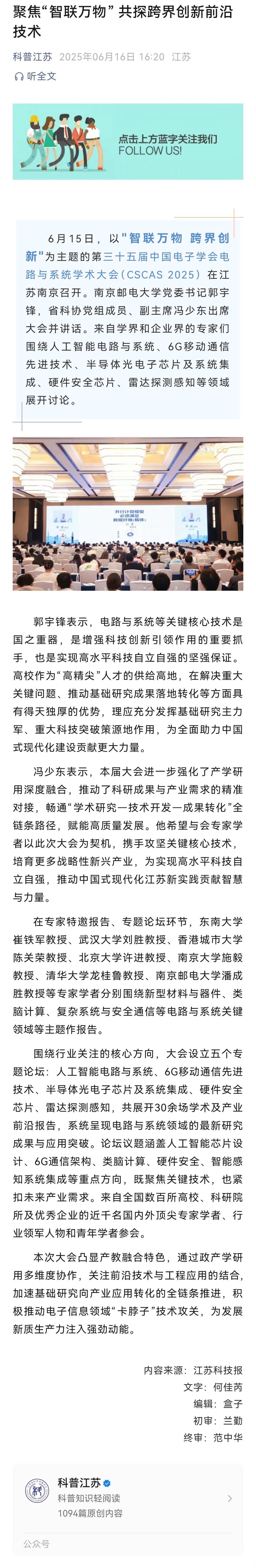 【科普江苏】聚焦“智联万物” 共探跨界创新前沿技术