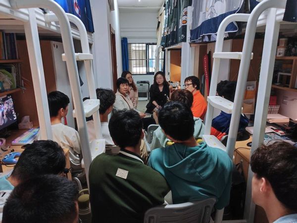 座谈会开始前,院领导及老师们走访了同学们的宿舍。认真查看了学生宿舍的卫生状况、设施配置以及同学们的学习生活环境,并与同学们亲切交谈,了解他们的日常生活和学习情况。在走访过程中,院领导和老师们对同学们整洁有序的宿舍环境给予了高度评价,希望同学们能够将安全、整洁、文明、优美的宿舍环境保持下去。