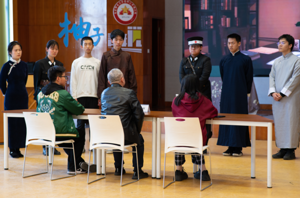 首先,“芯”光话剧团的同学们向观众们演绎了《永不消逝的电波》红色话剧,该话剧讲述了长征老干部、电台政委李侠与上海地下党纺织工何兰芬假扮夫妻,在参与延安通讯联络工作中不畏牺牲的故事。储老师在观看演出后,仔细研读了剧本,并提出了修改建议,他表示同学们要注意把握故事发生的背景,深入了解历史人物的心路历程,升华自己的演绎情感,再通过话剧的形式,重现“历史瞬间”。同时,储老师强调,通过挖掘历史、撰写剧本、戏剧演绎等形式,可以帮助学生更好地了解战邮历史、重温南邮故事,南邮学子要自觉做南邮精神、战邮精神的积极传播者和模范践行者,做“传邮万里,国脉所系”的传承者。
