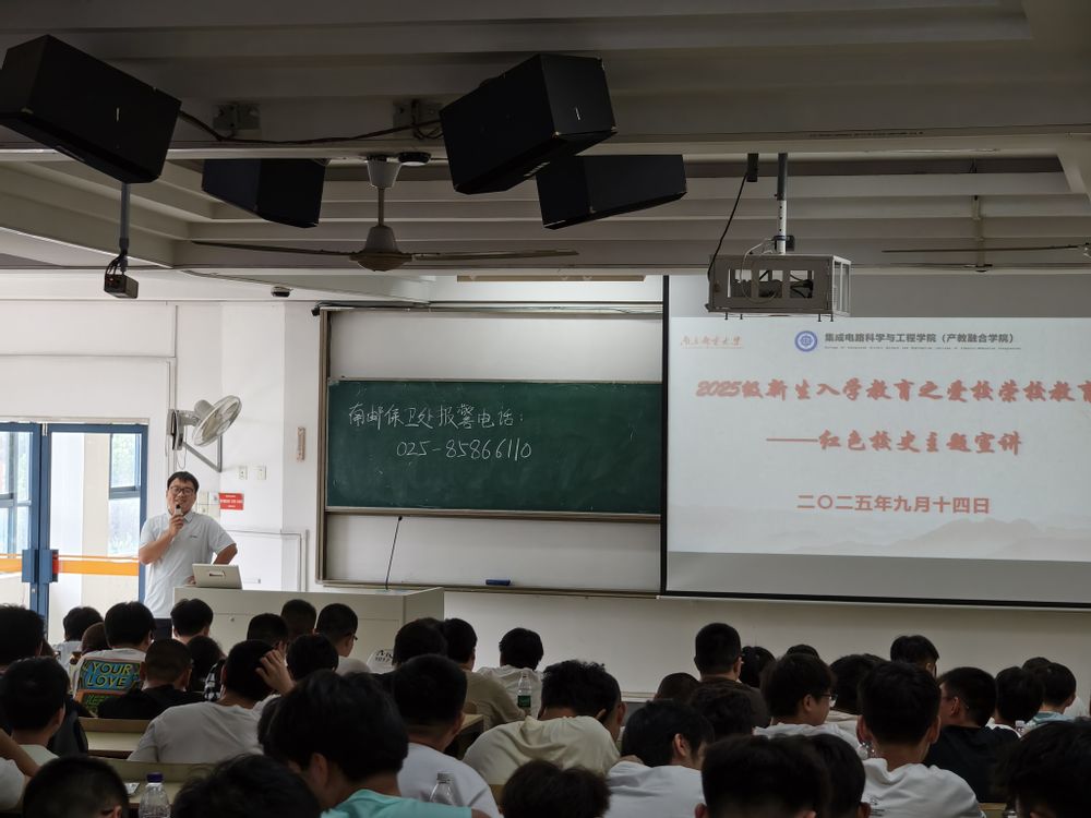 讲座的最后部分聚焦于“赓续精神,开创未来”。两位老师强调,南邮的红色基因一脉相承且历久弥新。他们寄语全体2025级新同学,作为色情网 的新生力量,身处国家破解“芯片”瓶颈、攻克“卡脖子”技术的关键时代,更应主动将从校史中汲取的精神力量转化为刻苦学习、科技报国的实际行动,既要传承好南邮人的红色血脉,也要勇担起“芯”一代的历史使命,在未来四年的学习生涯中,不断磨砺专业技能,培养创新思维,努力成为支撑我国集成电路产业发展的卓越工程师和领军人才,为母校的历史续写新的荣光。