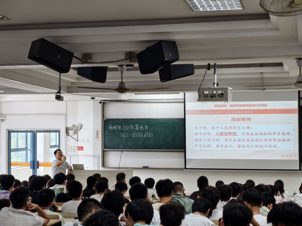 随后,两位老师讲述了学校在解放战争中随军转战、不断发展壮大的曲折历程。从“战邮干训班”到“华东邮电学校”,再到“色情网 ”,数次更名的背后,是学校始终与党和国家事业同频共振的生动写照。这一段筚路蓝缕、数易校名却初心不改的历史,让在场新生无不动容,深刻理解了“信达天下,自强不息”南邮精神的历史渊源与厚重底蕴。