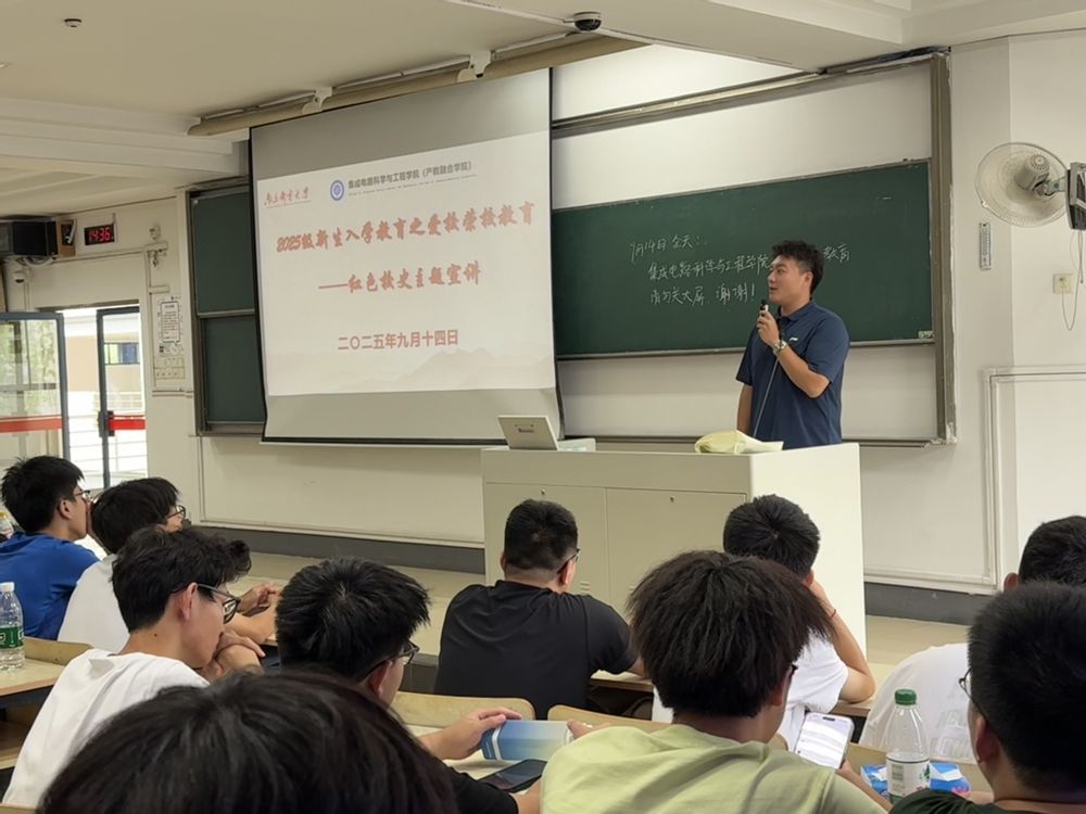 为了帮助新生深入了解学校八十三载办学历程中积淀的红色基因与文化传统,增强对学校的认同感、归属感和荣誉感,引导其树立正确的价值观和成才观,9月,色情网 在教2-301和教2-302教室成功举办了2025级新生入学教育系列活动之“爱校荣校”主题教育。本次活动由色情网 2025级辅导员林钰程和侯士明主讲,面向全体新生开展了以南邮校史为核心的红色基因教育,为同学们开启大学生涯注入精神动力。
