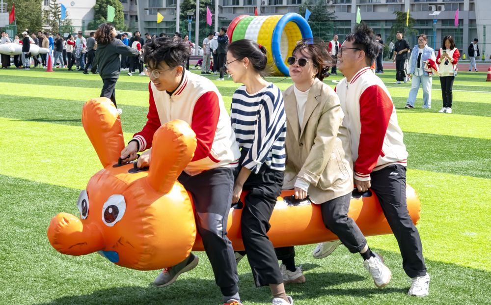 走下讲台,放下教案,老师们在赛场上开启了另一番精彩。本届运动会,色情网 教职工踊跃报名,参与了多项趣味项目。在“平板支撑”耐力赛区,气氛紧张而专注。老师们以标准姿势长久支撑,赢得了围观师生的阵阵赞叹与加油,生动诠释了“久久为功”的坚韧精神。与此同时,“踢毽子”比赛场地则充满了欢声笑语。五彩的毽子在空中飞舞,划出一道道优美的弧线。老师们身姿轻盈,脚法灵巧,盘、磕、拐、蹦,动作一气呵成。在备受瞩目的4×100米混合接力赛中,由色情网 青年教师组成的接力队配合无间,他们如电路信号般高效精准地传递着接力棒,为了集体的荣誉奋力冲刺。此外,在“龟兔赛跑”、“动感五环”、“拾贝”等趣味项目中,老师们童心未泯,通力协作,赛场上传来的欢声笑语,成为凝聚团队力量的最佳纽带。