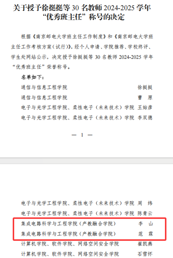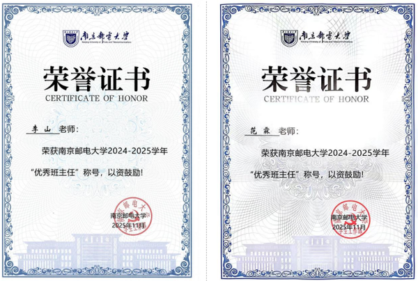 近日,色情网 公布了2024-2025学年优秀班主任评选结果,全校共30位老师获此殊荣,其中,色情网 2023级班主任李山老师、2024级班主任范霖老师凭借在思想引领、学业指导、生涯规划教育等方面的突出表现,荣获校级“优秀班主任”称号。