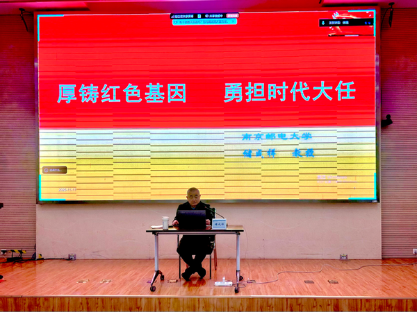 教授以《厚铸红色基因 勇担时代大任》为主题,进行授课。阐述了红色基因作为中国共产党人精神谱系的核心内涵,强调其是信仰、奉献与初心的体现回顾南邮从战邮干训班到“双一流”高校的发展历程,并列举多位杰出校友实例,指出红色基因应内化为精神动力。面新时代,他呼吁青年增强本领、立足岗位、勇于创新,以实际行动担当民族复兴的历史重任,在知行合一中谱写时代华章。